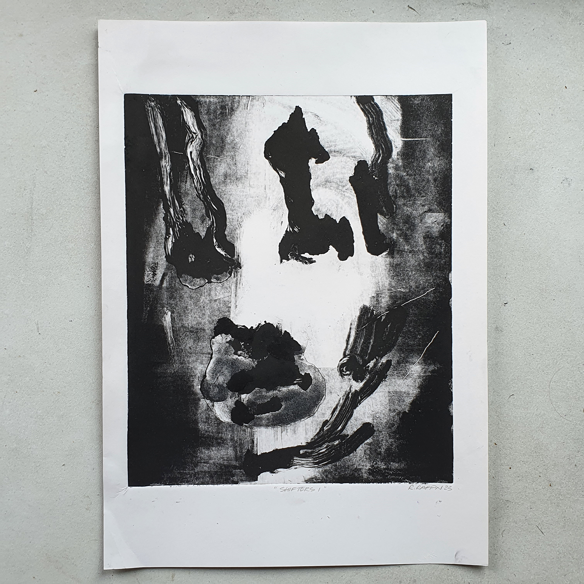 Monotypes (25x30cm) with mid-black etching ink on A3 size 200g/sm printing paper. Signed and numbered.